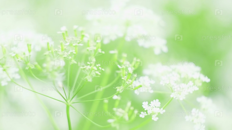 Близкий план красивых белых цветов в полном фокусе на летнем лугу. Концепция. Яркие белые подчеркивания в центре внимания листьев луга. Белые дикие цветы ярко освещают камеру в солнечный день. Ностальгия и воспоминания в белых диких цветах
