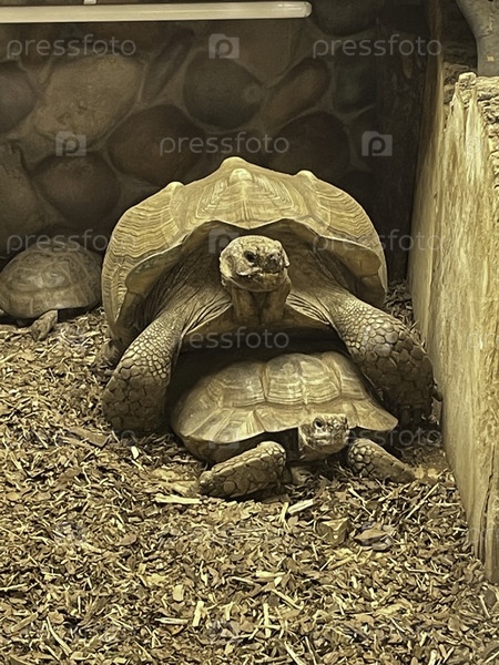Две черепахи исследуют окружающую среду, демонстрируя естественное поведение и взаимодействие друг с другом