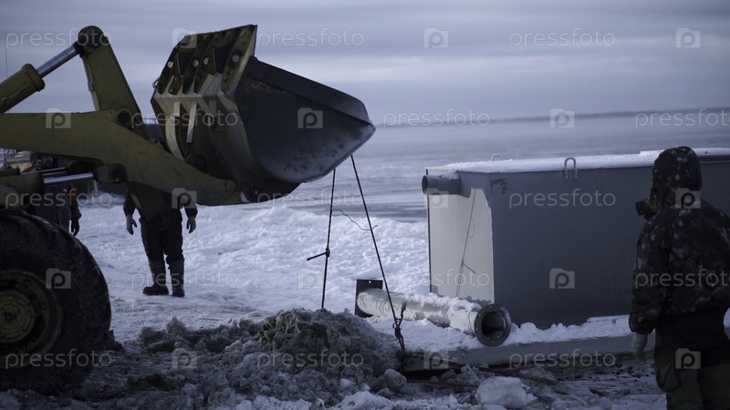 Экскаватор на земляных работах, грязи и загрязненной воде. клип. экскаватор на строительной площадке