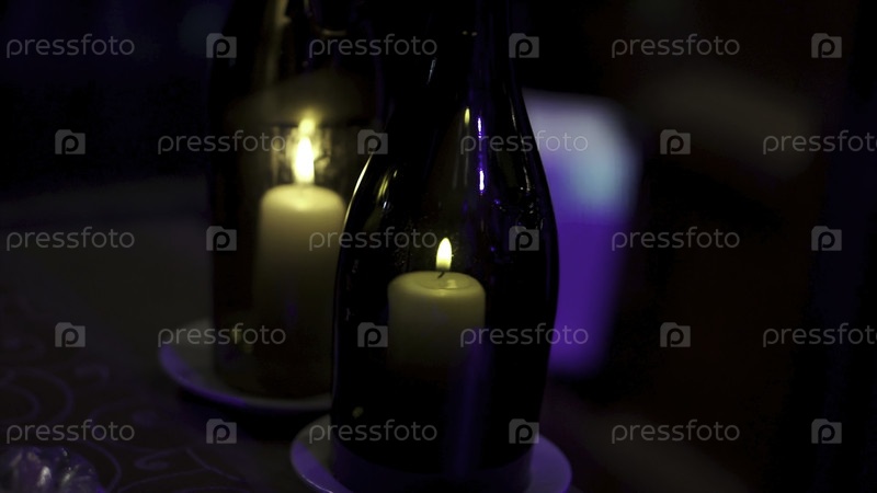 Декоративные бутылки с свечами внутри. Свечи внутри небольшой бутылочки. Летнее домашнее украшение, стеклянная банка и бутылка, светодиодная свеча пламя света внутрь