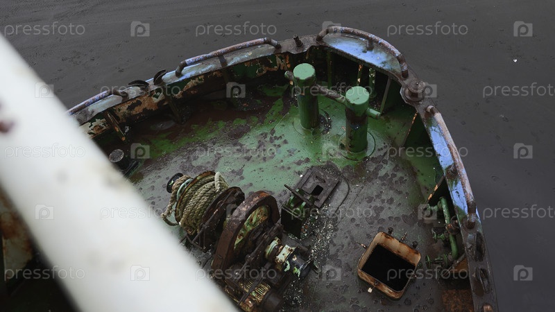 Части заброшенной рыбацкой лодки. Клип. Заброшенная лодка с ржавыми частями в пасмурный день