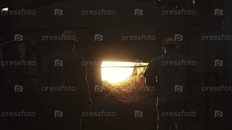 Квалифицированные рабочие внимательно следят за потоком расплавленного металла в динамичной тяжелой промышленной среде