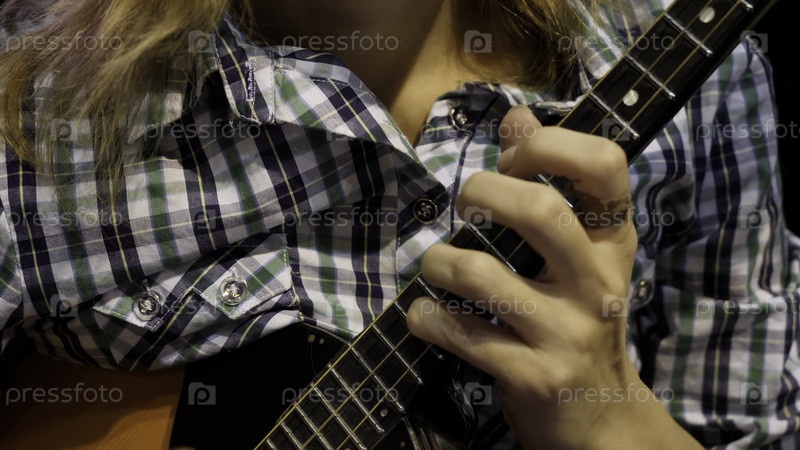 Девушка играет на балалайке, ближайший снимок народный музыкальный инструмент балалайка
