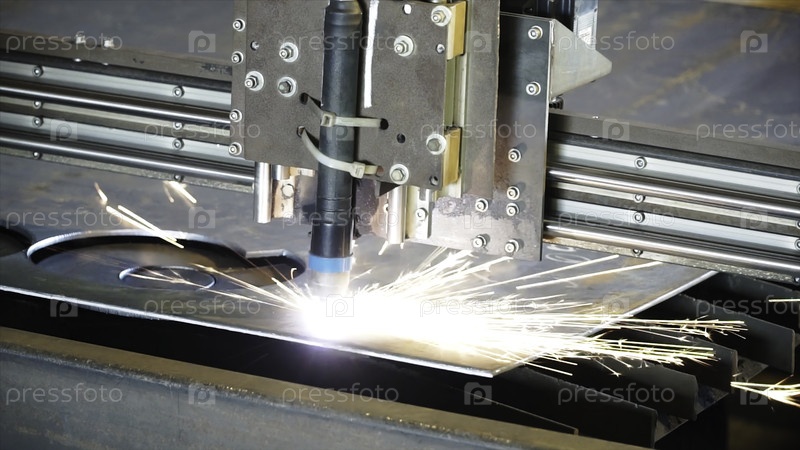 Промышленная плазменная машина для резания металлической пластины. Клип. Резание металлических плит газовой резкой. Резка стальной плиты газовой машиной