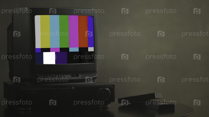 Телевизионная тест-карта с радужными полосами, геометрические сигналы. ретро аппаратное обеспечение 1980. художественный дисплей Glitch показывает статическую ошибку, неисправную передачу