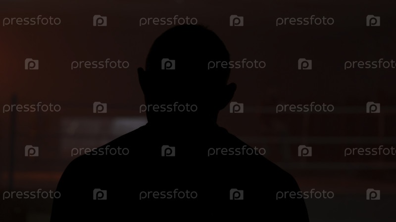 Силуэт мужчины, который входит в комнату с красным светом на заднем плане.Тень человека в красной комнате.Силуэт человека в свете