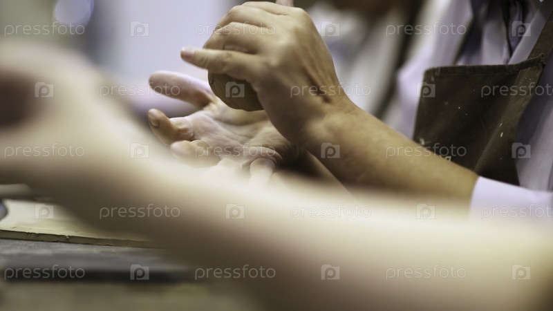 Близкий взгляд на квалифицированные руки, тщательно занимающиеся творческим ремеслом, демонстрируя истинное искусство мастерства