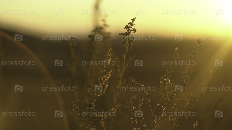 Дикая трава с подсветкой в золотистом солнечном свете ландшафт с сухой степной травой степейная трава на солнце