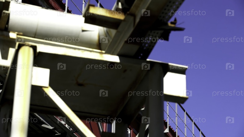Промышленное сооружение с конвейерным мостом в паре с ярким желтым зданием