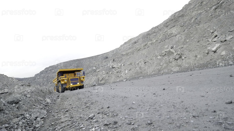 Перемещение грузовика, загруженного рудой. Ближайшее изображение дороги к карьеру мела