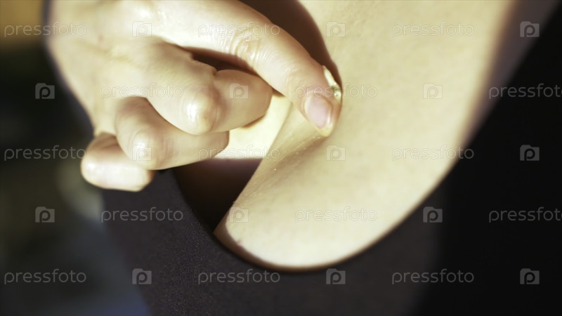 Ближайшее изображение соблазнительной женской груди с каплей белого сливочного соуса. Акция. Женщина бросает каплю пальцем, сексуальная кухня и концепция foodporn