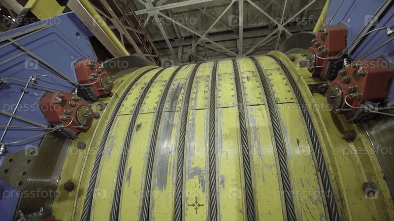 Детальный вид большой промышленной машины, демонстрирующей свой сложный вращающийся механизм на фабрике