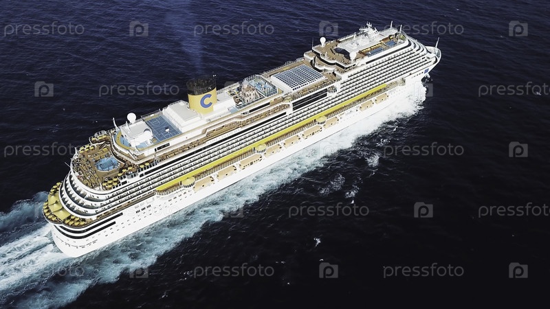 Вид с вершины красивого белого круизного судна в Атлантическом океане, роскошный отдых