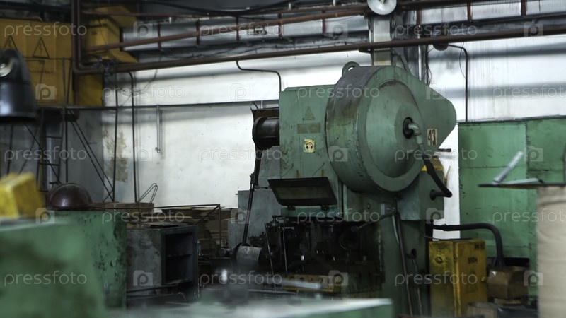 Близкий план старых промышленных машин на заброшенном рабочем месте.Промышленная мастерская