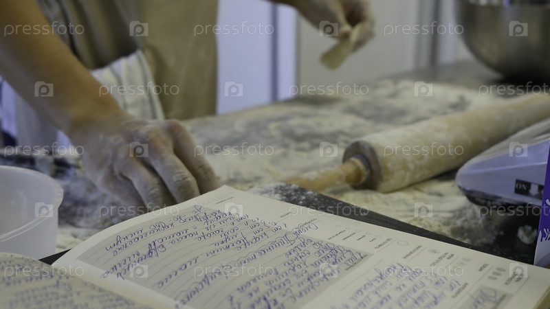 Детали руки женщины, прокатывающей тесто с помощью роликовой булавки во время приготовления домашней пасты