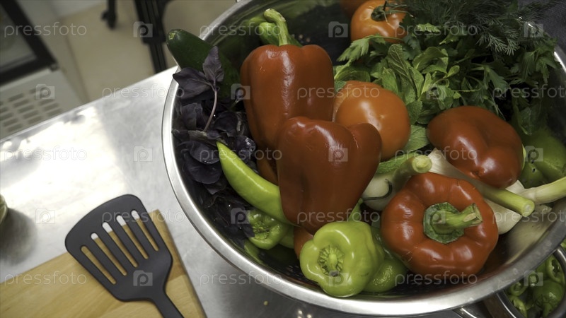 Нож разрезает красный перец на деревянной доске для резки. Клип. Резка ядра в сладком перце на деревянной доске. Удаление семян из красного свежего перца с помощью ножа. Приготовление овощей. Вид сверху. Нож разрезает красный перец наполовину