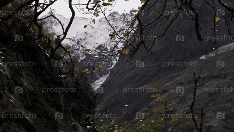 Живописный осенний пейзаж с высокими горами, творческая природа в национальном парке