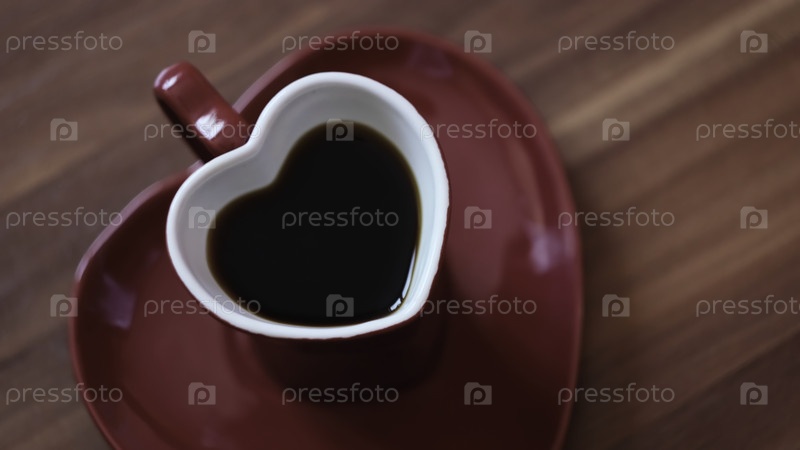 Женщина сделала кофе в кружке с сердцем Концепция Красивая красная кружка в форме сердца с темным кофе Романтическая кружка в форме сердца с кофе на романтический день