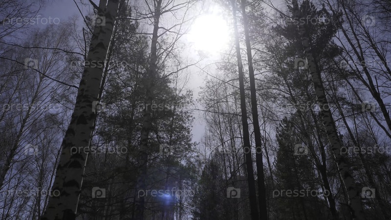 Березовый лес на солнце утром, березовая роща осенью