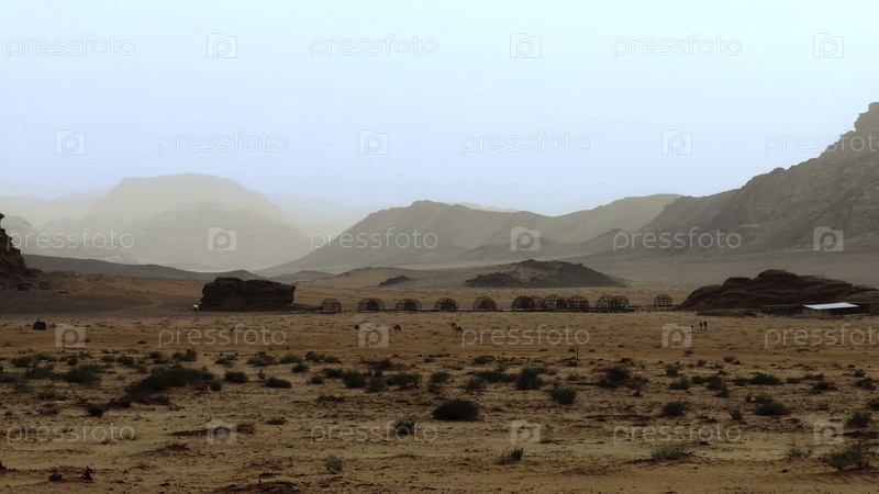 Завораживающий и потрясающий вид на обширный пустынный пейзаж с далекими горами под туманным небом