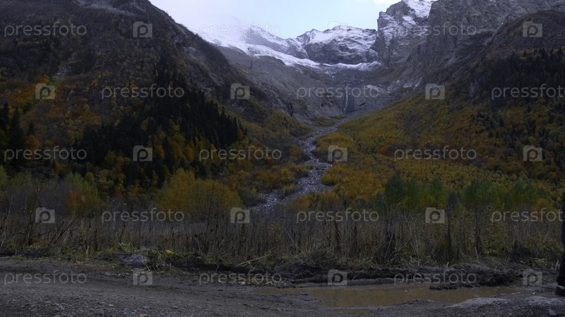Туристическая семья, идущая по скалистой пешеходной тропе вдоль гигантских гор. Творчество. Проводящее время вместе и путешествующее в ущелье вдоль желтой травы