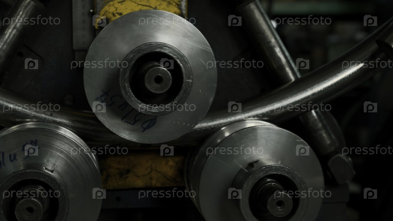 Автоматическая металлообрабатывающая машина для изгиба промышленных стальных труб.Креативно.Закрытие рабочей машины на фабрике