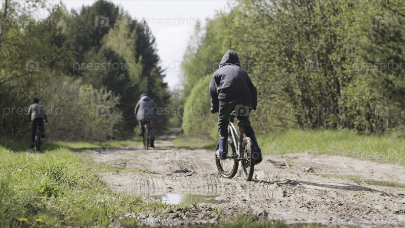 Летний стиль жизни момент счастливого детства, дети веселятся и ездят на велосипеде вдоль летнего зеленого леса
