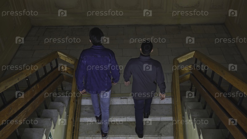 Студенты поднимаются по лестнице здания. СМИ. Студенты поднимаются по лестнице университета