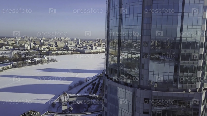 Ближайшее изображение стекла здания небоскребов с облаком, Бизнес-концепция архитектуры.Отражение города в окнах небоскреба