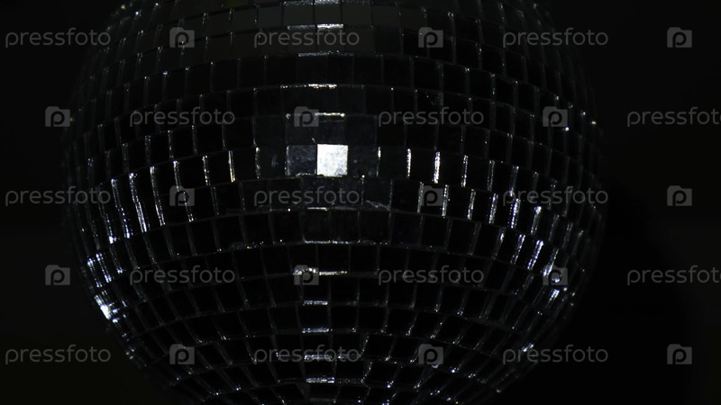 Близкий план дискотечного мяча на черном фоне Концепция Дискотечный мяч вращается в темноте и отражает свет Красивый стеклянный дискотеческий мяч во тьме на празднике