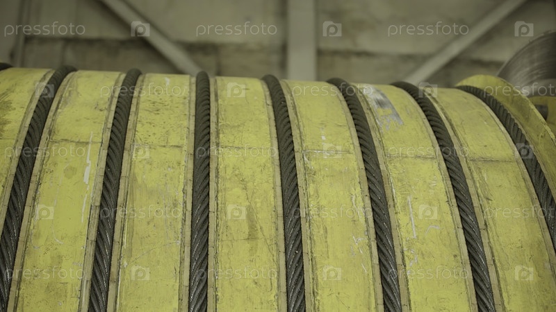 Близкий план завернутого желтого кабеля, демонстрирующего его текстуру и прочную структуру в промышленной среде