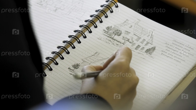 Руки, держащие карандаш, чтобы писать или рисовать в блокноте. Цветение взрослых с мягкими карандашами на концах. Женский ручной чертовой карандаш в ноутбуке Ближайший план p