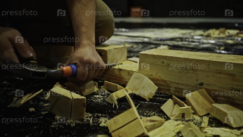 Работы по плотнице, резьба деревянных блоков. СМИ. Использование плита для обработки древесины при сборке сценографических украшений