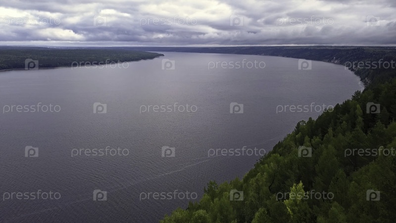 Летний пейзаж с рекой и лесом. Клип. Вид из беспилотника на небольшое городское озеро вокруг зеленых цветущих деревьев