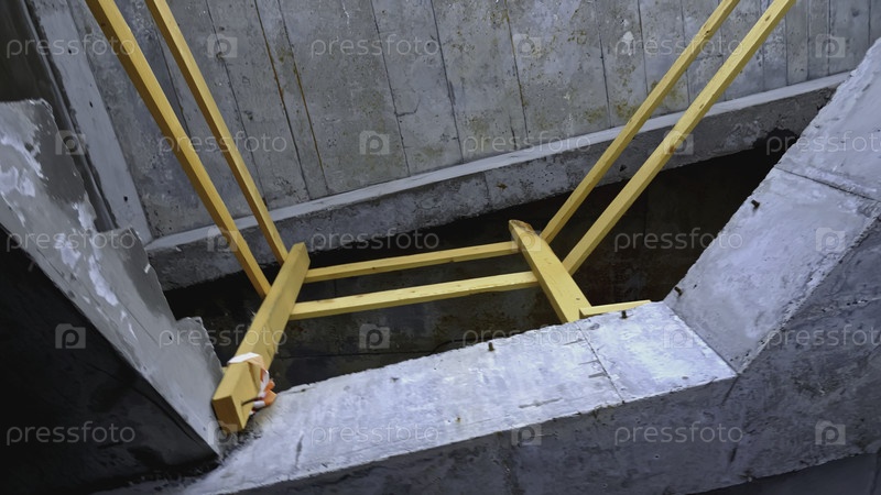 Вид на строительство бетонного здания со ступеньками. Клип. Внутренняя бетонная лестница в строящемся здании. Бетонная структура здания с лестницей внутри