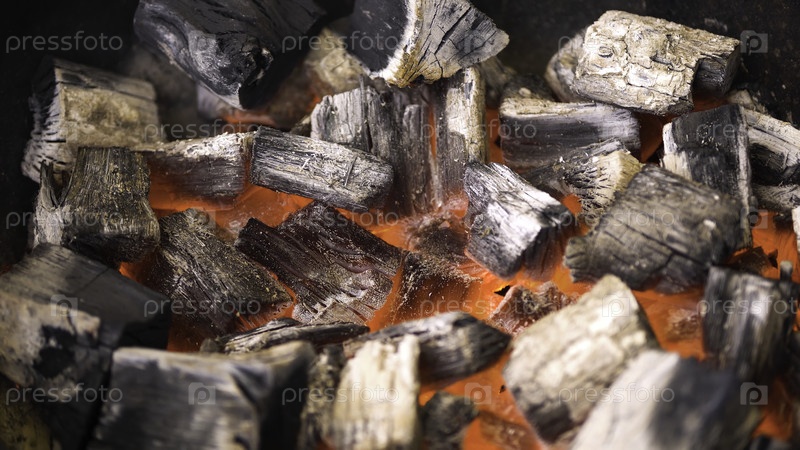 Смотреть телевизор Горячие горящие угольные брикеты, светящиеся в барбекю на гриле