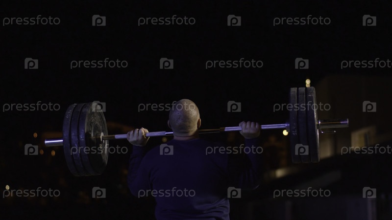 Тяжеловес поднимает стойку над головой. силовая тренировка с огромным весом. сильный кроссфит-спортсмен в середине тяжелый погрузчик в тренажерном зале бокса кроссфита