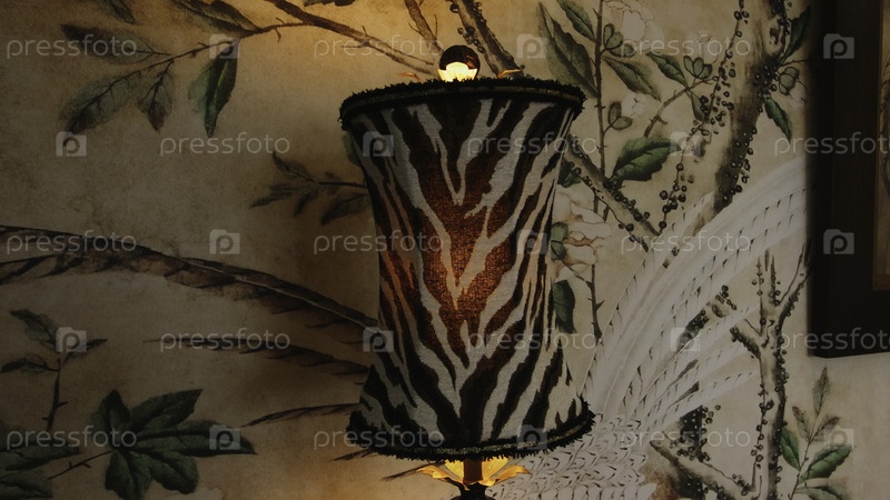 Антикварная роскошная лампа в дорогих интерьерах. креативность. стильная дорогая напольная лампа, светящаяся вечером во внутреннем пространстве. дорогая историческая напольная лампа в стильном интерьере апартаментов класса люкс