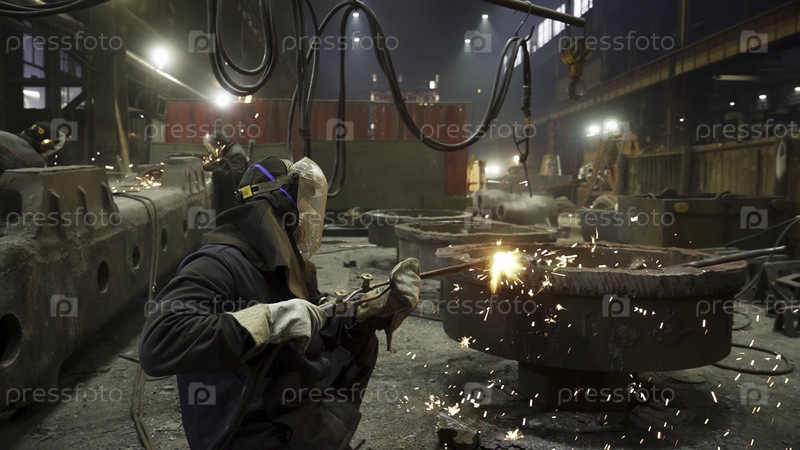 Многочисленные рабочие усердно занимаются процессами изготовления и сварки металлов в оживленной промышленной среде