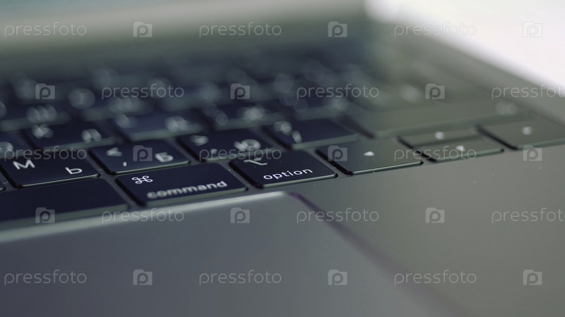 Серебряный ноутбук с черными деталями клавиатуры. Ближайший снимок нового современного ноутбука, концепция технологического прогресса и технологий