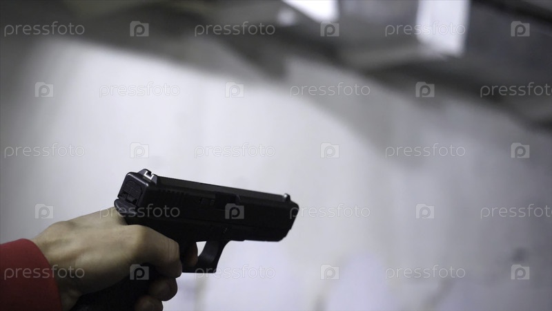 Пистолет в руке мужчины.Мужчина, держащий пистолет на близком расстоянии.Черный пистолет в руках человека
