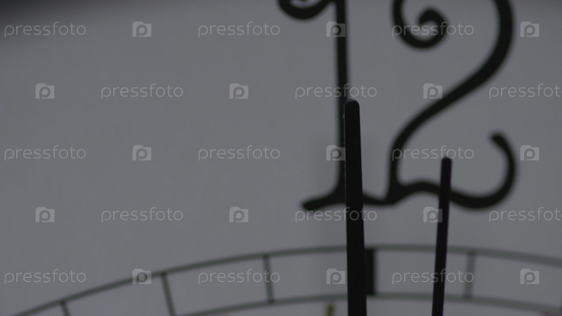 Близкий взгляд на часы ручки расположены почти в 12 часов, захватывая точность и детали