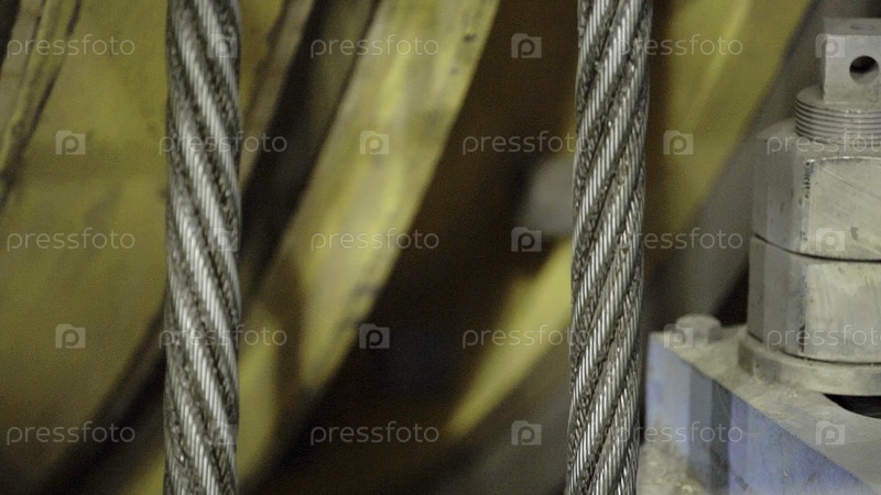 Подробный ближайший взгляд на прочные стальные кабели и различные компоненты машин, представленные в промышленной рабочей зоне