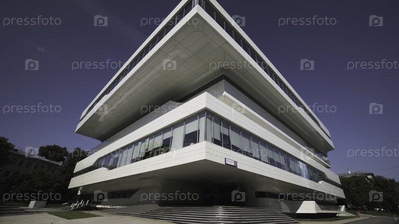 Amazing Dominion Tower - бизнес-центр, расположенный в Москве (Россия).Концепция современной архитектуры, красивое новое здание с острыми углами на фоне синего неба
