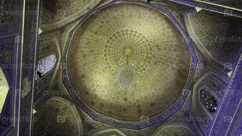 Украшенный купол с сложными узорами и потрясающими золотыми акцентами на протяжении всего дизайна