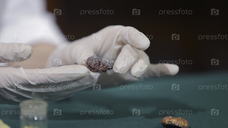Ученый или археолог, держащий камни или минералы в руках