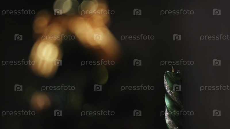 Близкий план погасшей рождественской свечи на фоне размытого силуэта елки с огнями и украшениями. Концепция. Рождественское настроение