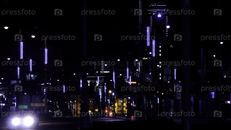Ночной трек современного города оснащен красивыми неоновыми огнями, как в городе будущего