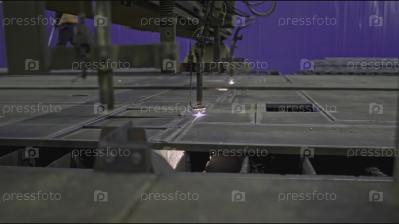 Автоматизированная сварочная машина на заводе. Запасный клип. Лазерная машина, которая режет металлические пластины. Металлообрабатывающая машина со сваркой в промышленном производстве