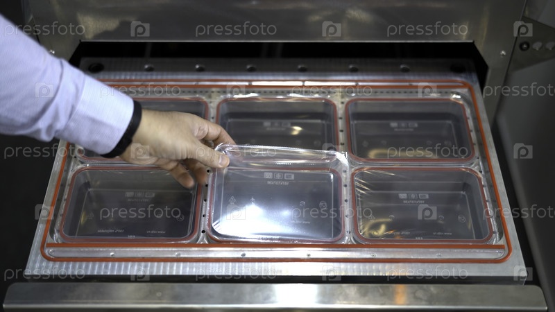 Одноразовое производство пластиковых упаковок, промышленное образование. СМИ. Закрытие руками менеджеров проверки качества пластмассовых небольших коробок, инспекция качества